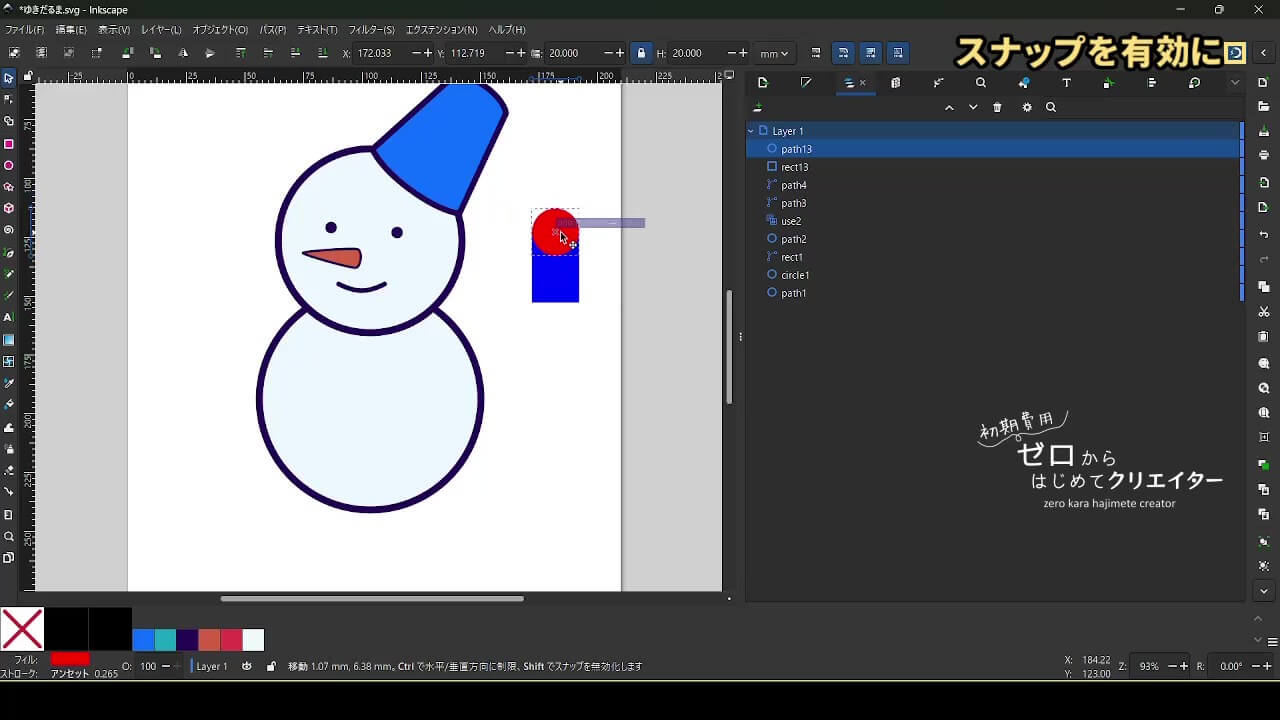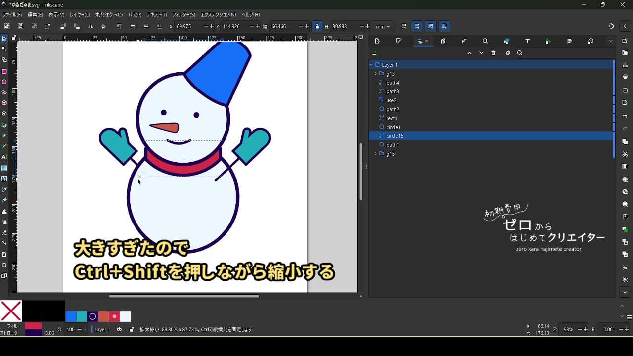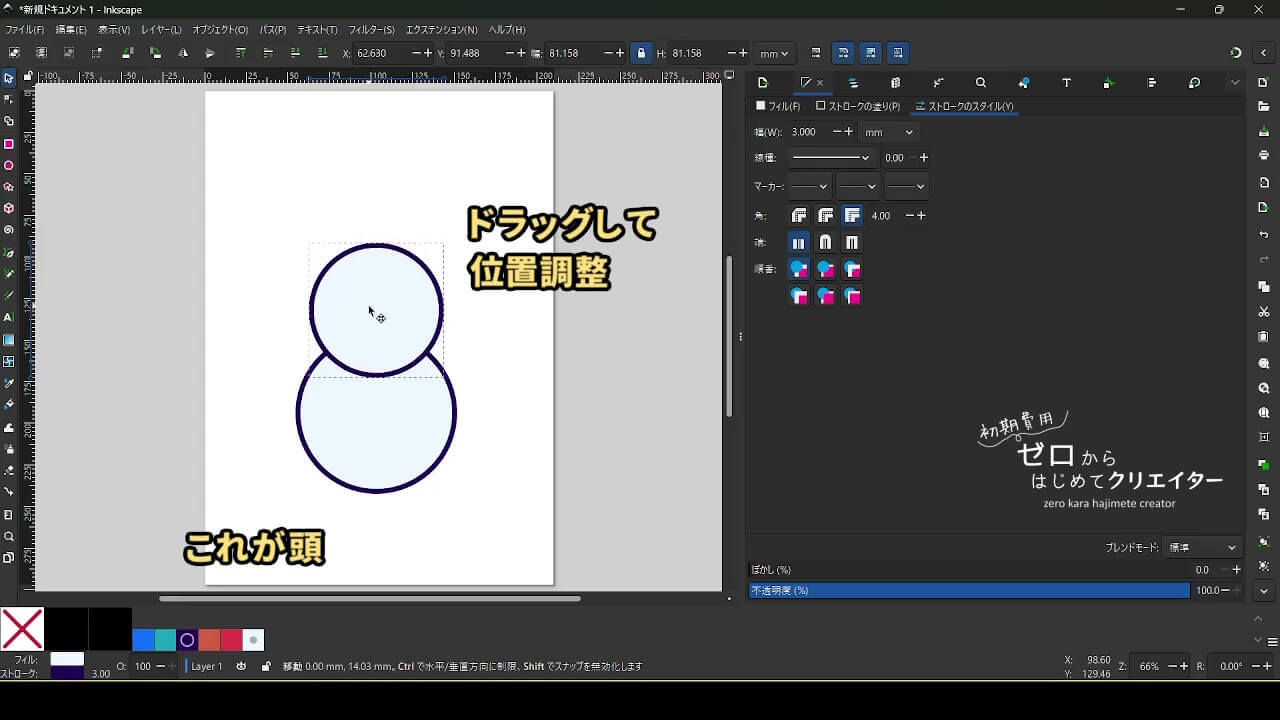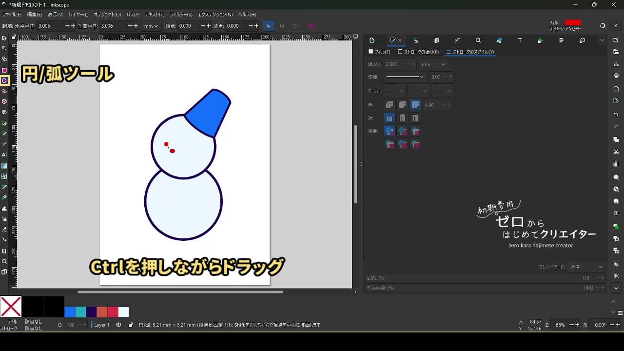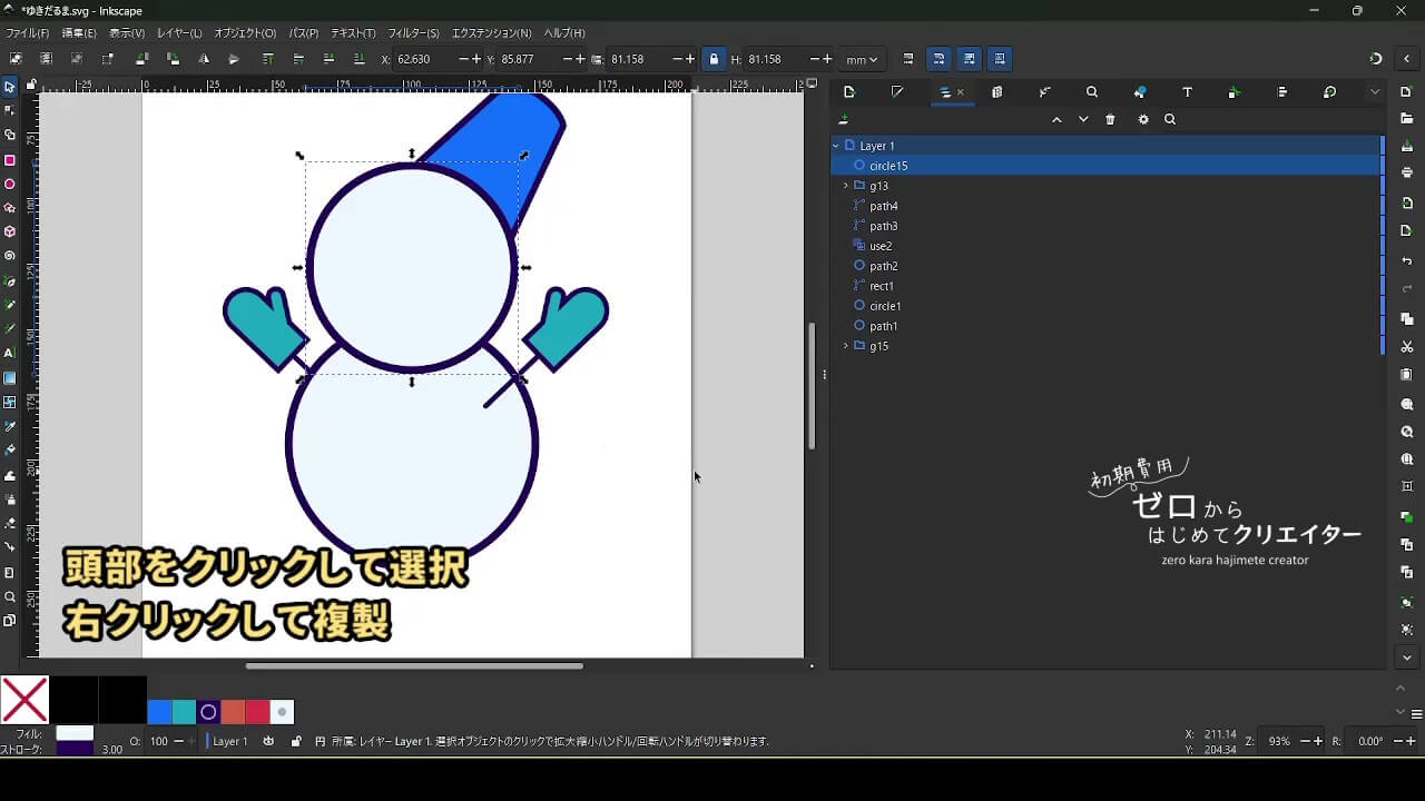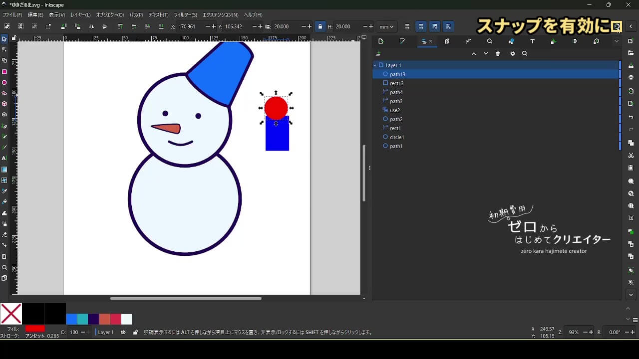 今回は雪だるまを例に、イラストの組み立て方を解説します。