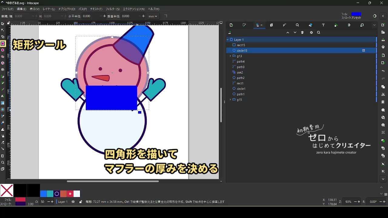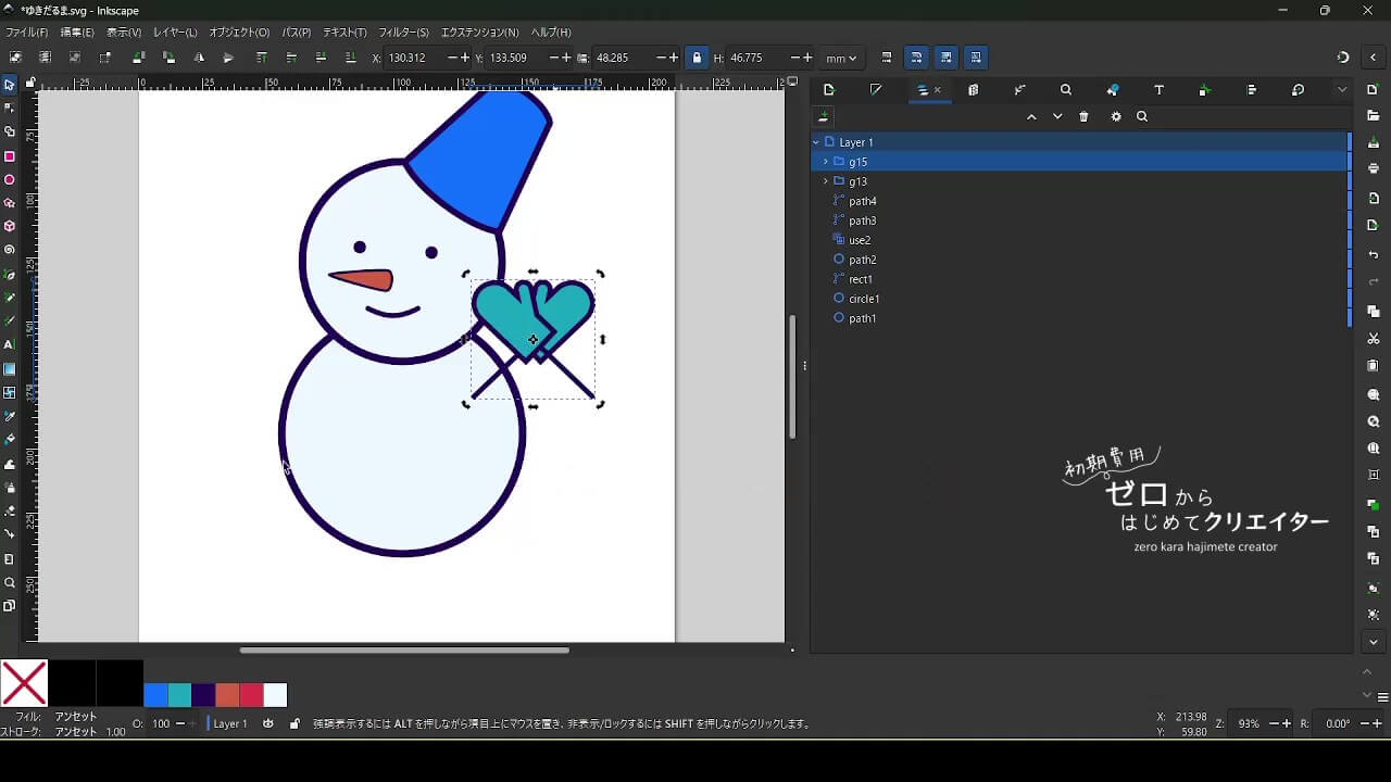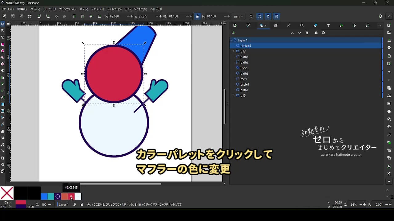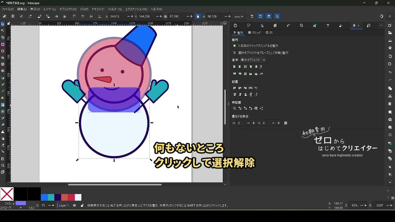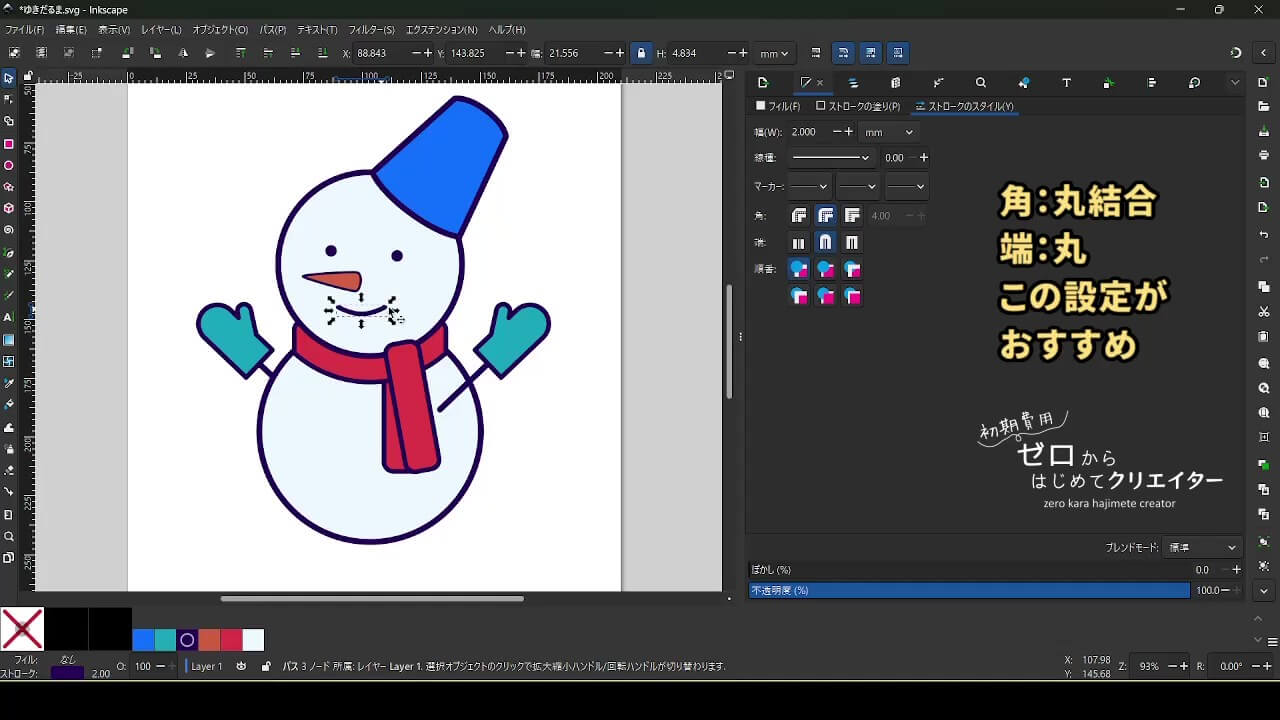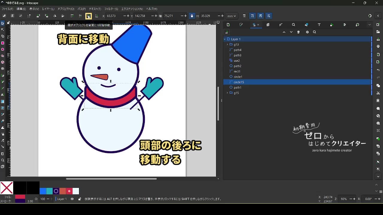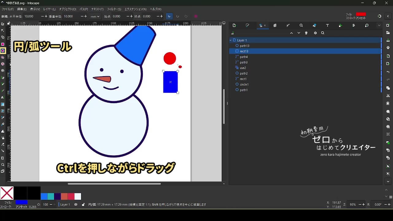 今回は雪だるまを例に、イラストの組み立て方を解説します。