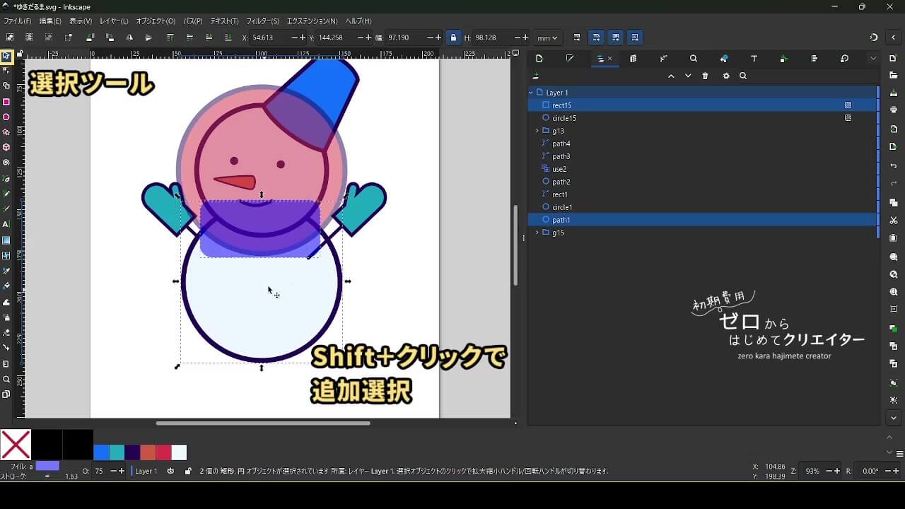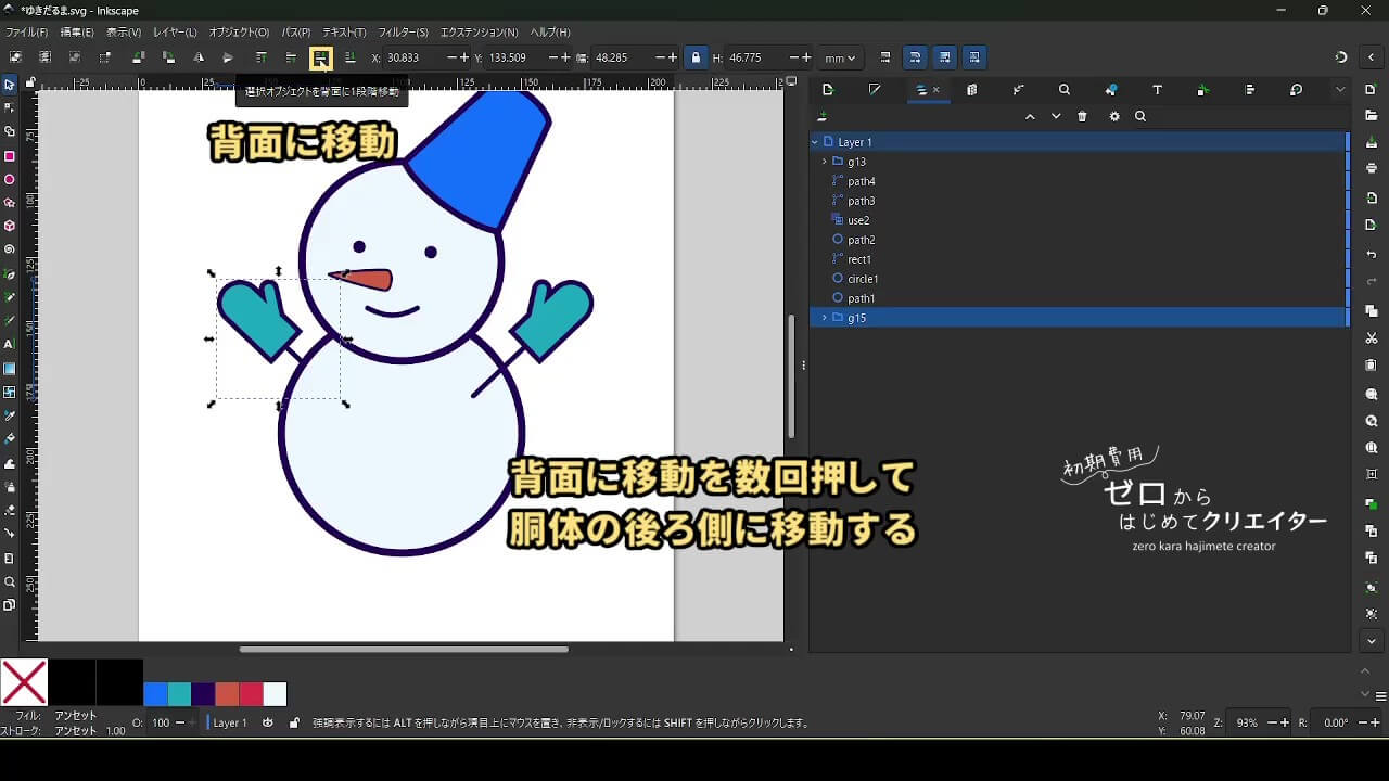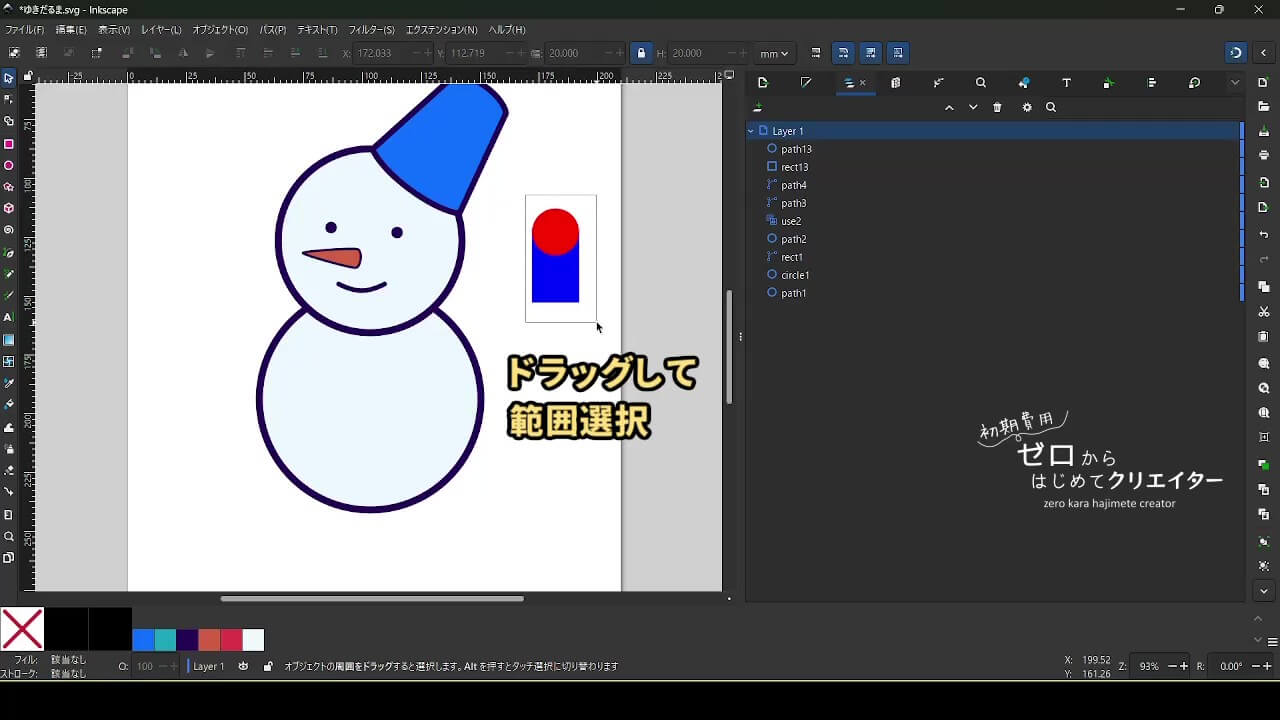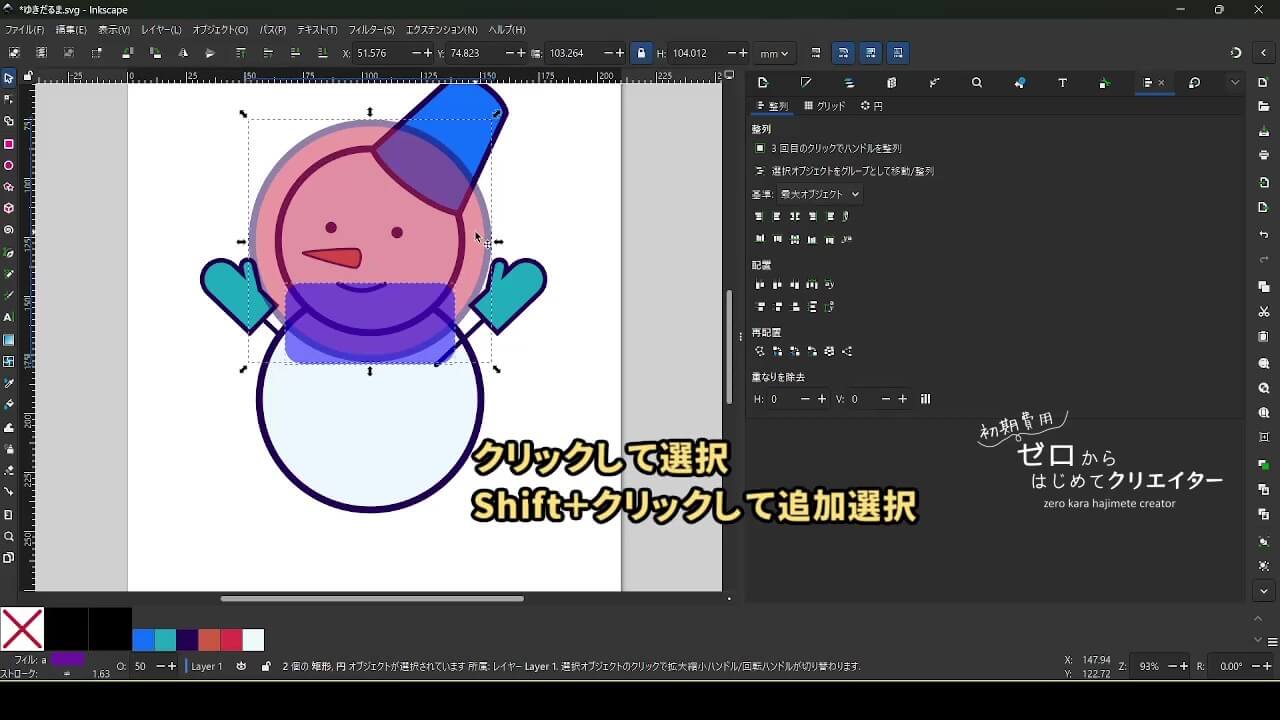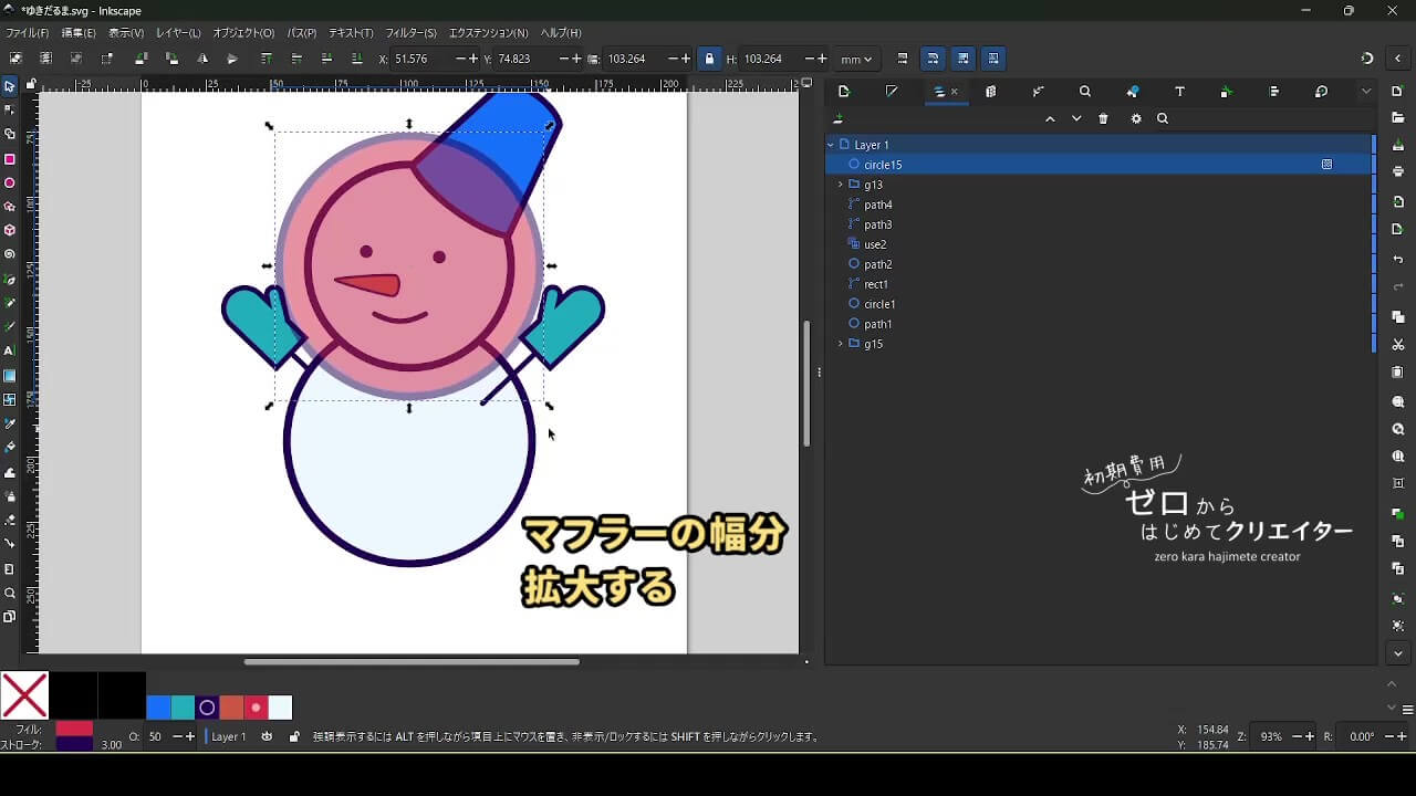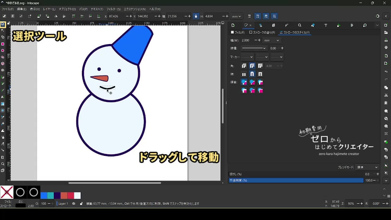 今回は雪だるまを例に、イラストの組み立て方を解説します。