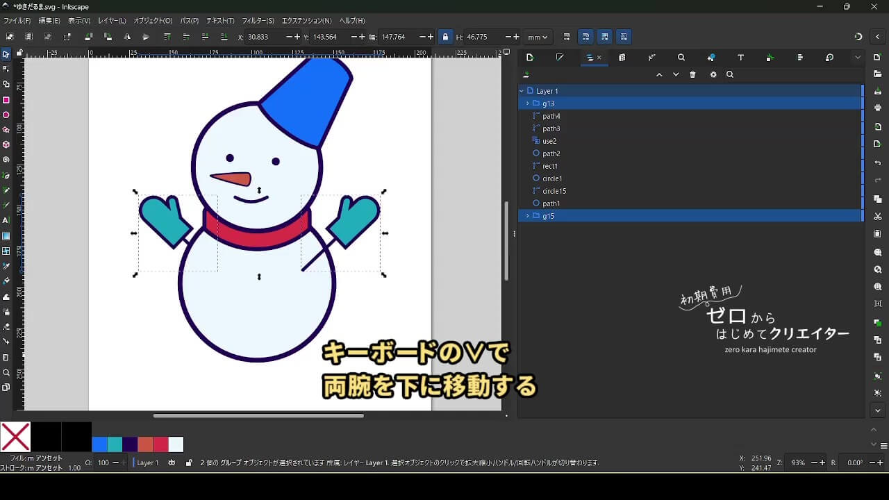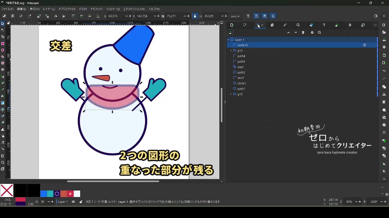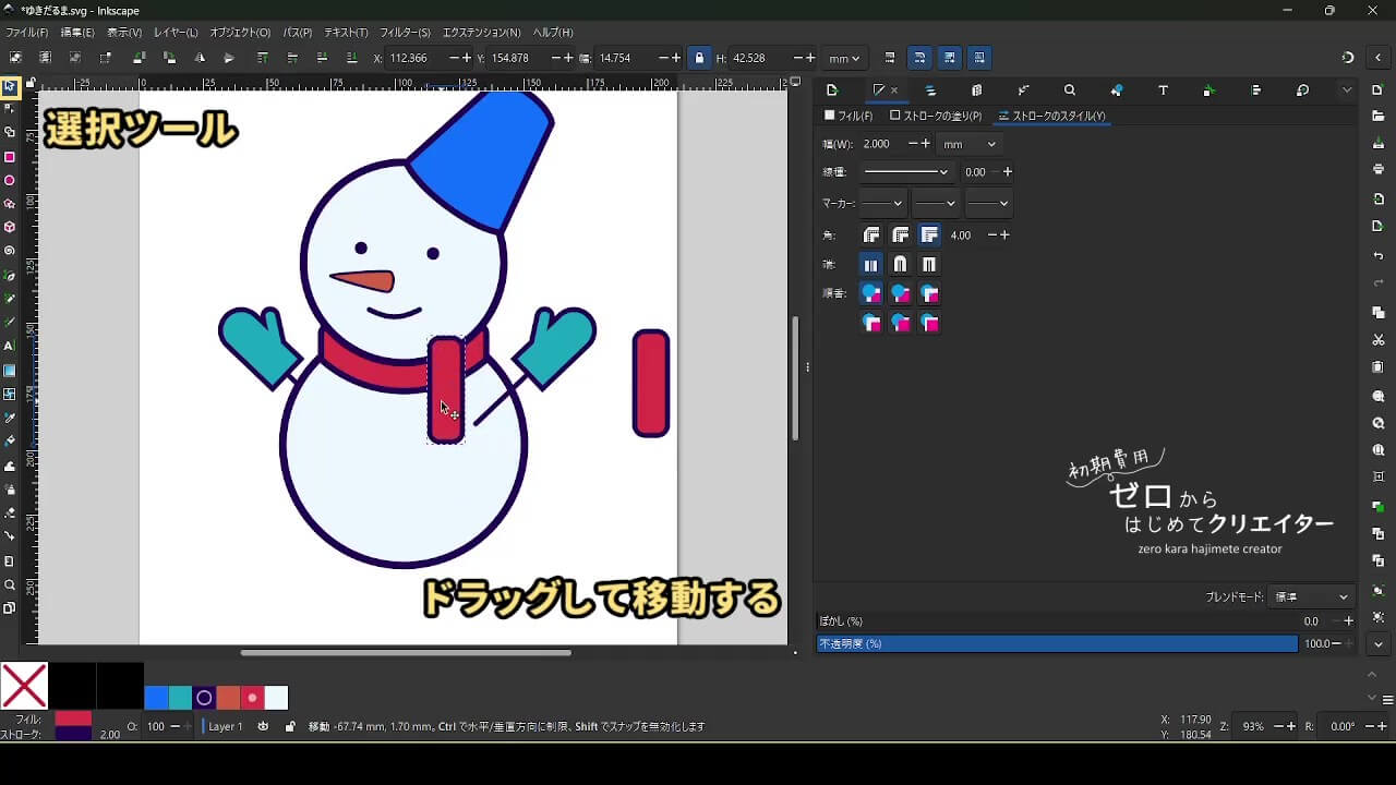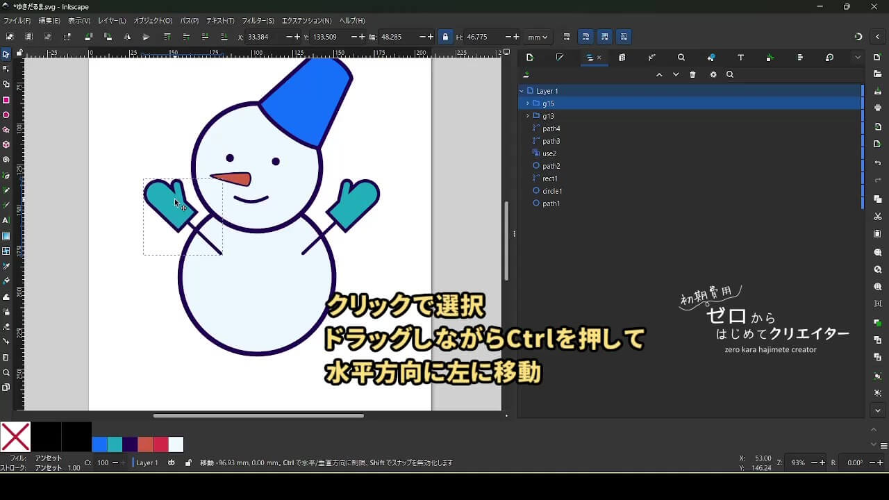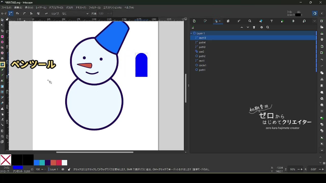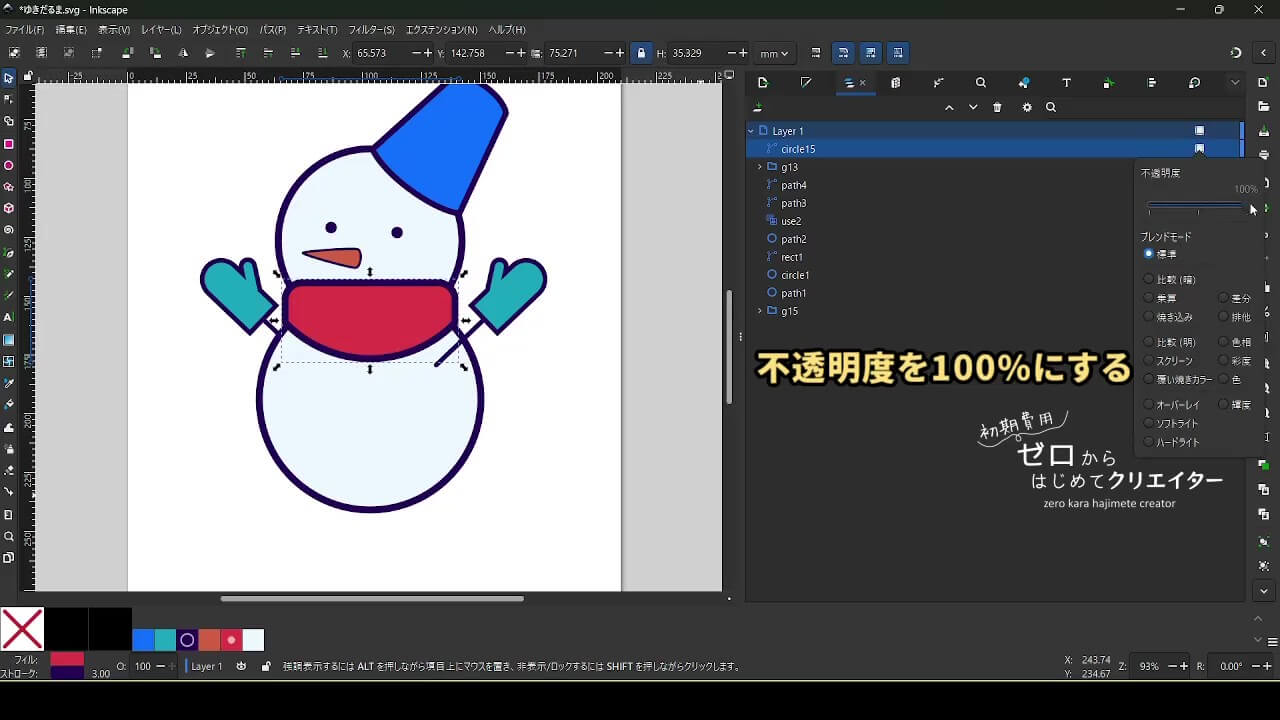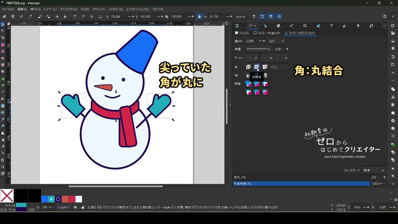 今回は雪だるまを例に、イラストの組み立て方を解説します。