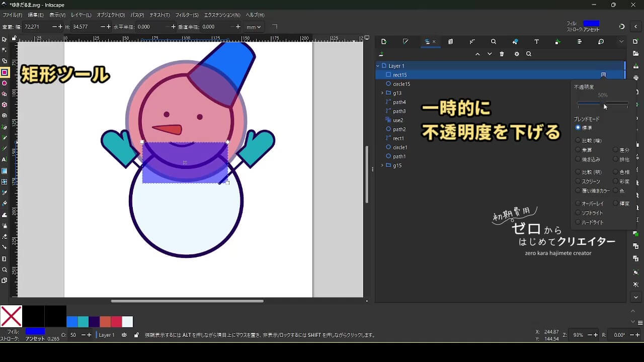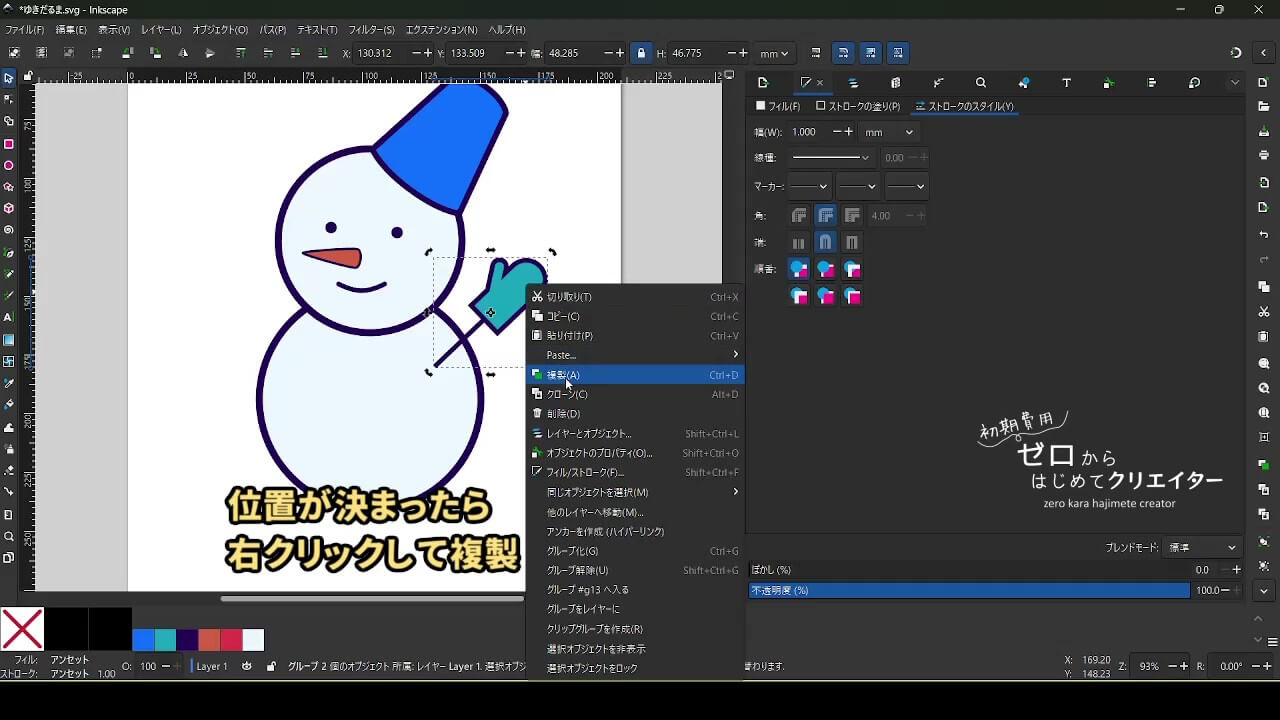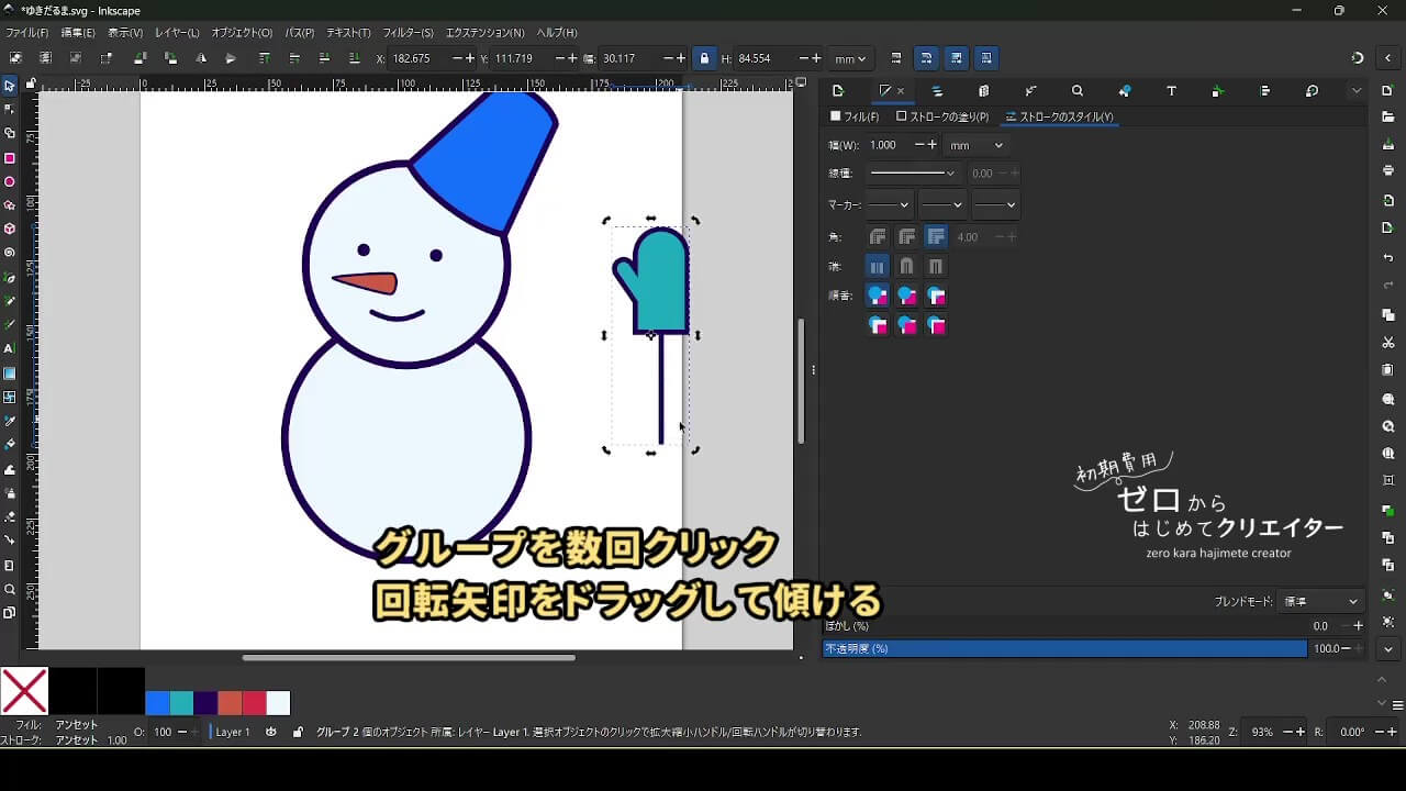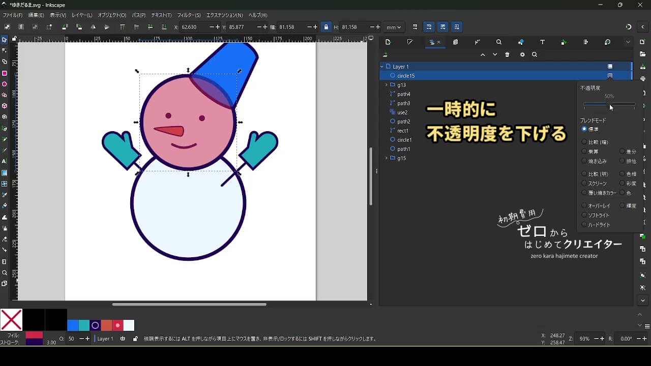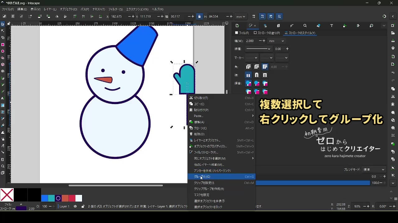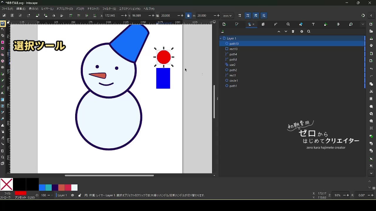 今回は雪だるまを例に、イラストの組み立て方を解説します。