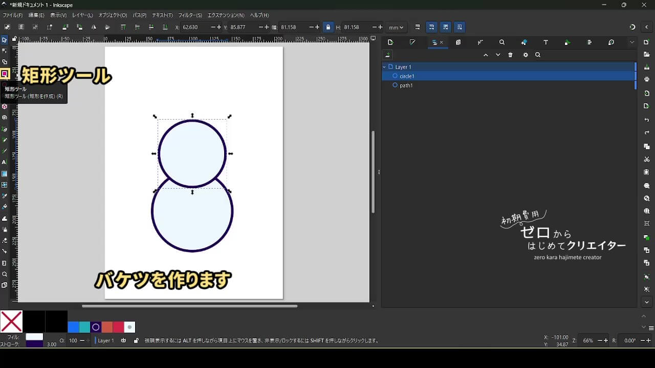 手順1:円2つで土台を作る