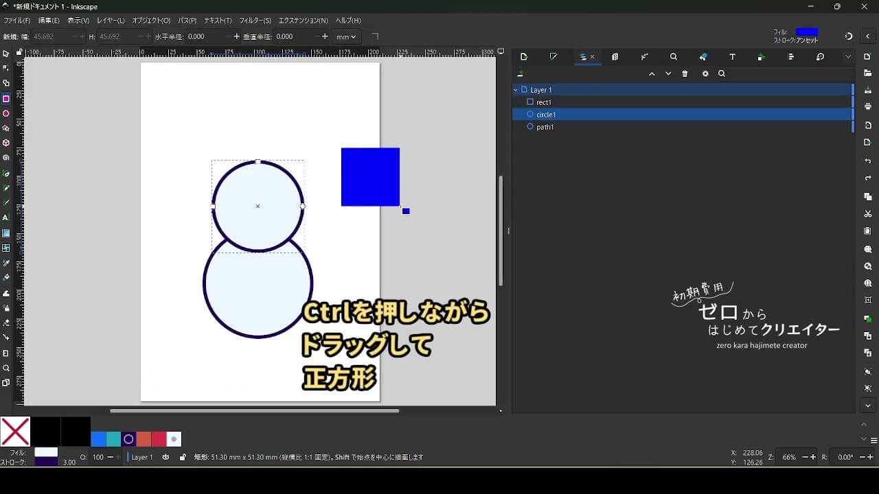 - 矩形ツールでCtrlを押しながら正方形を作成