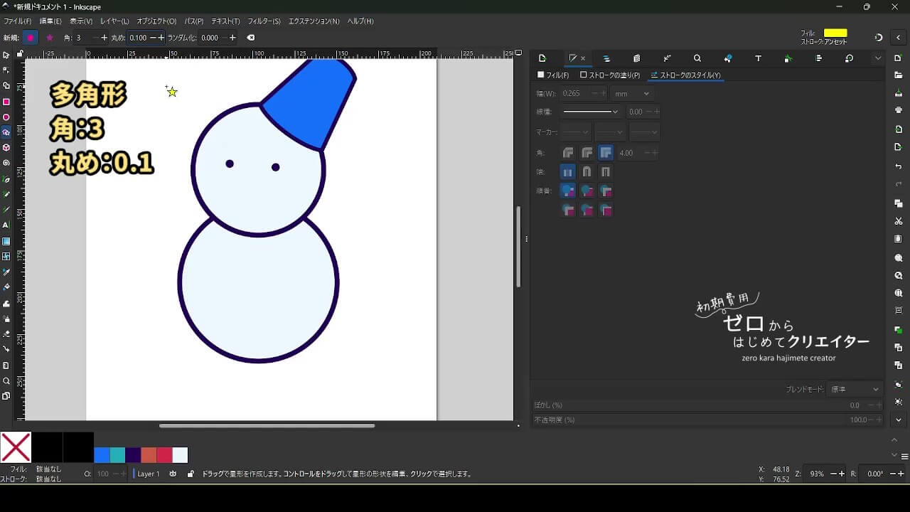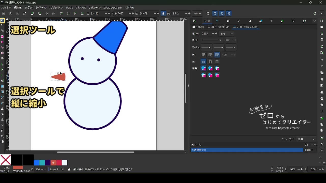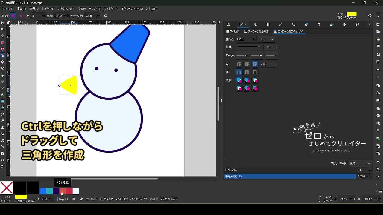 帽子も描きません。図形を変形して作ります。