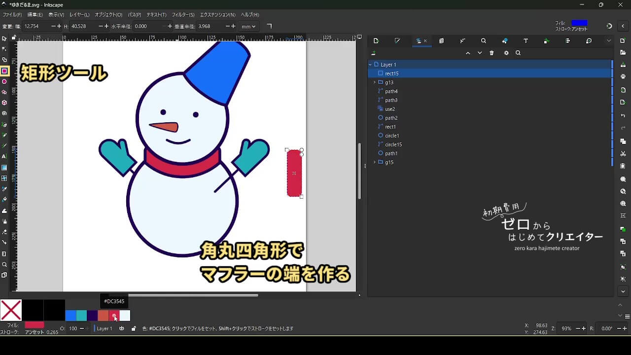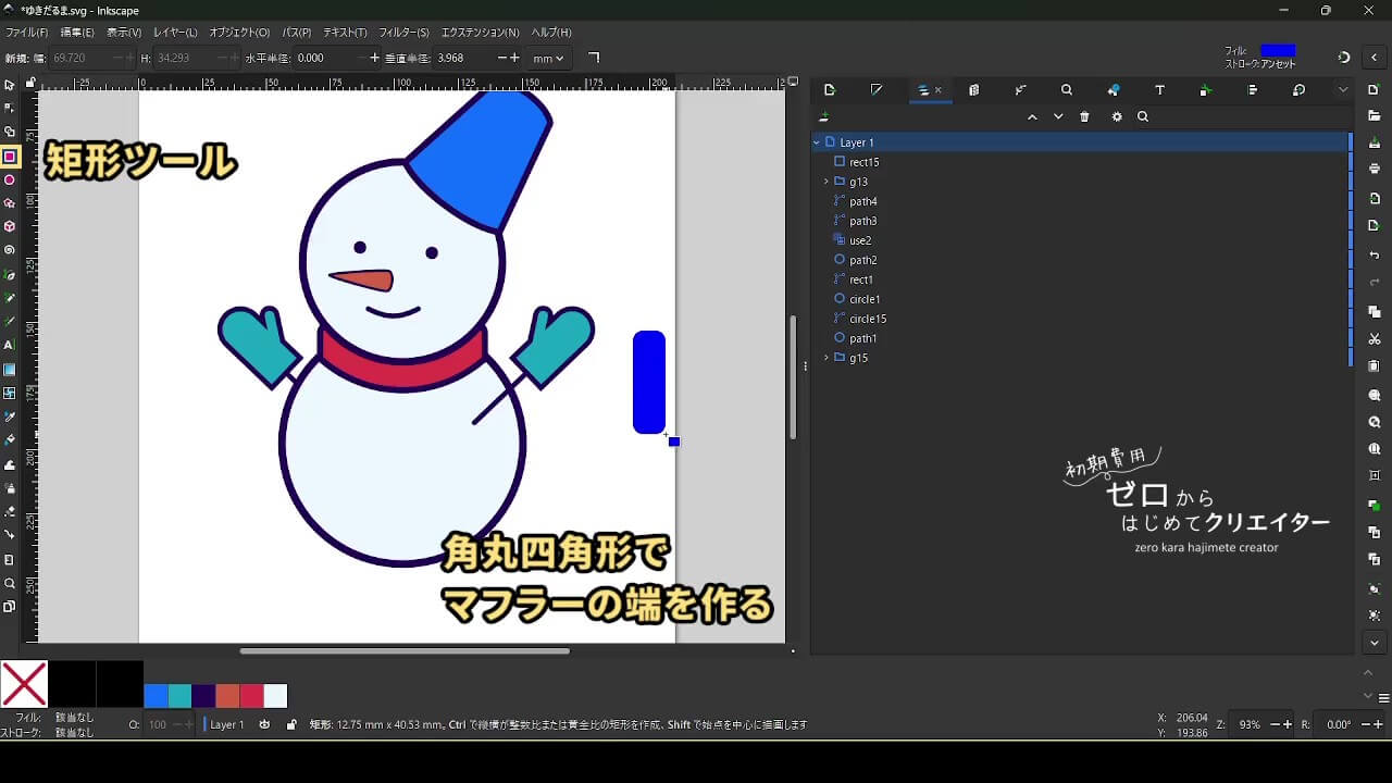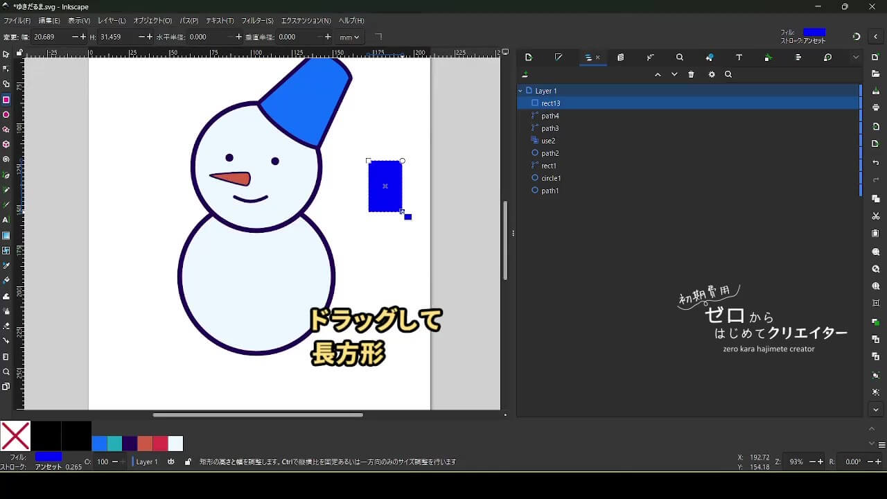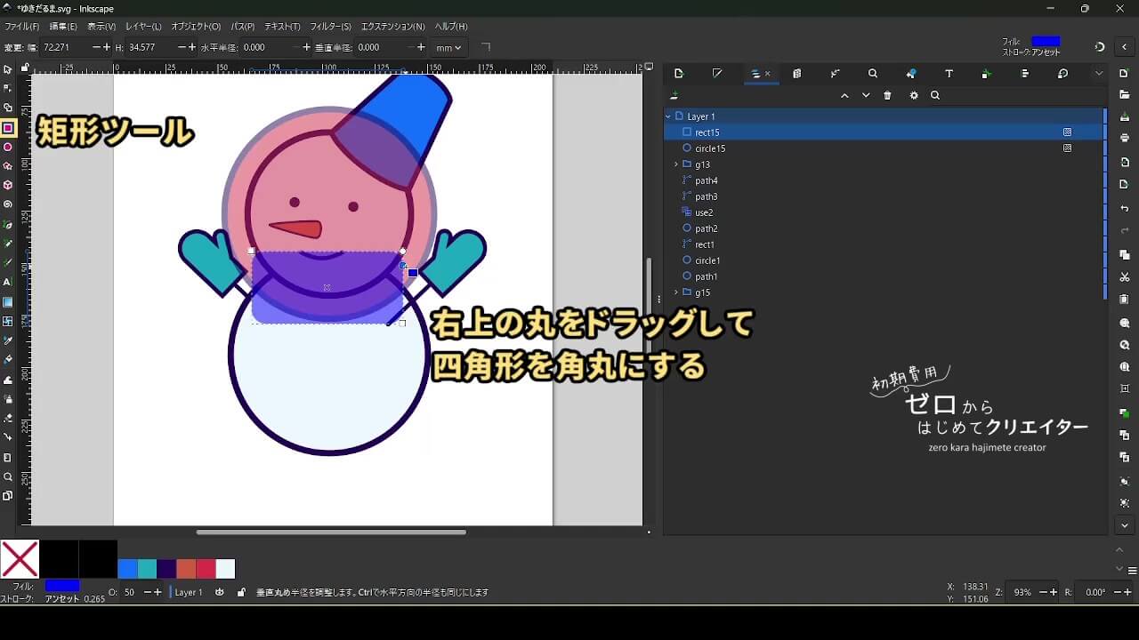 帽子も描きません。図形を変形して作ります。