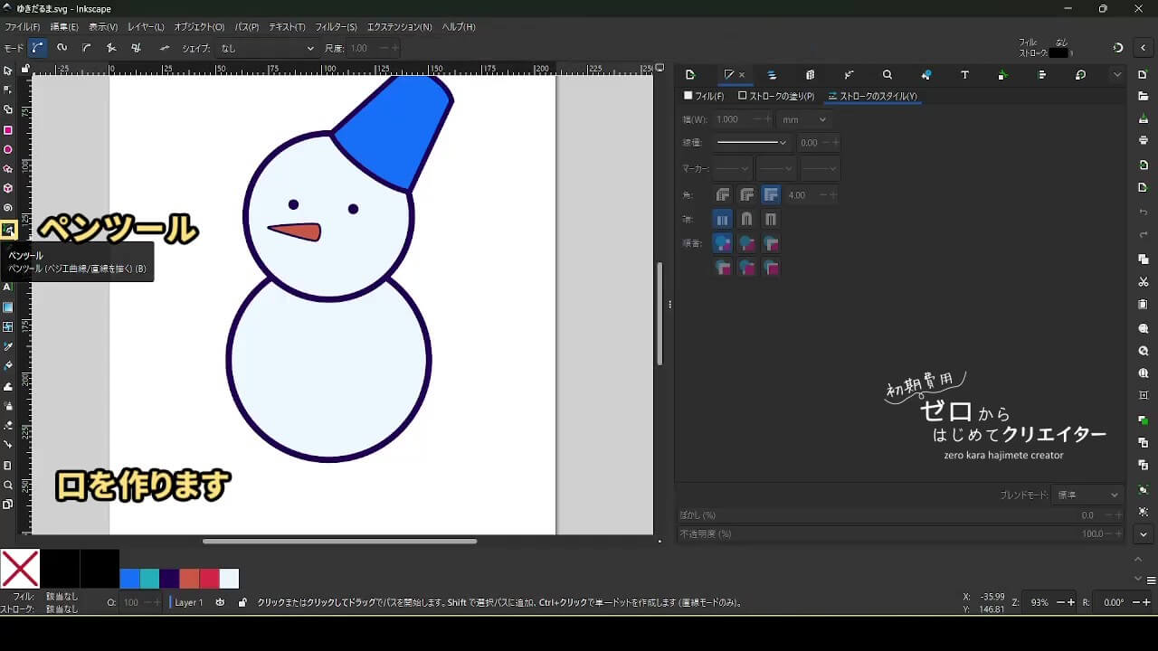 口は曲線が必要に見えます。でも、ペンツールで使うのは直線だけです。