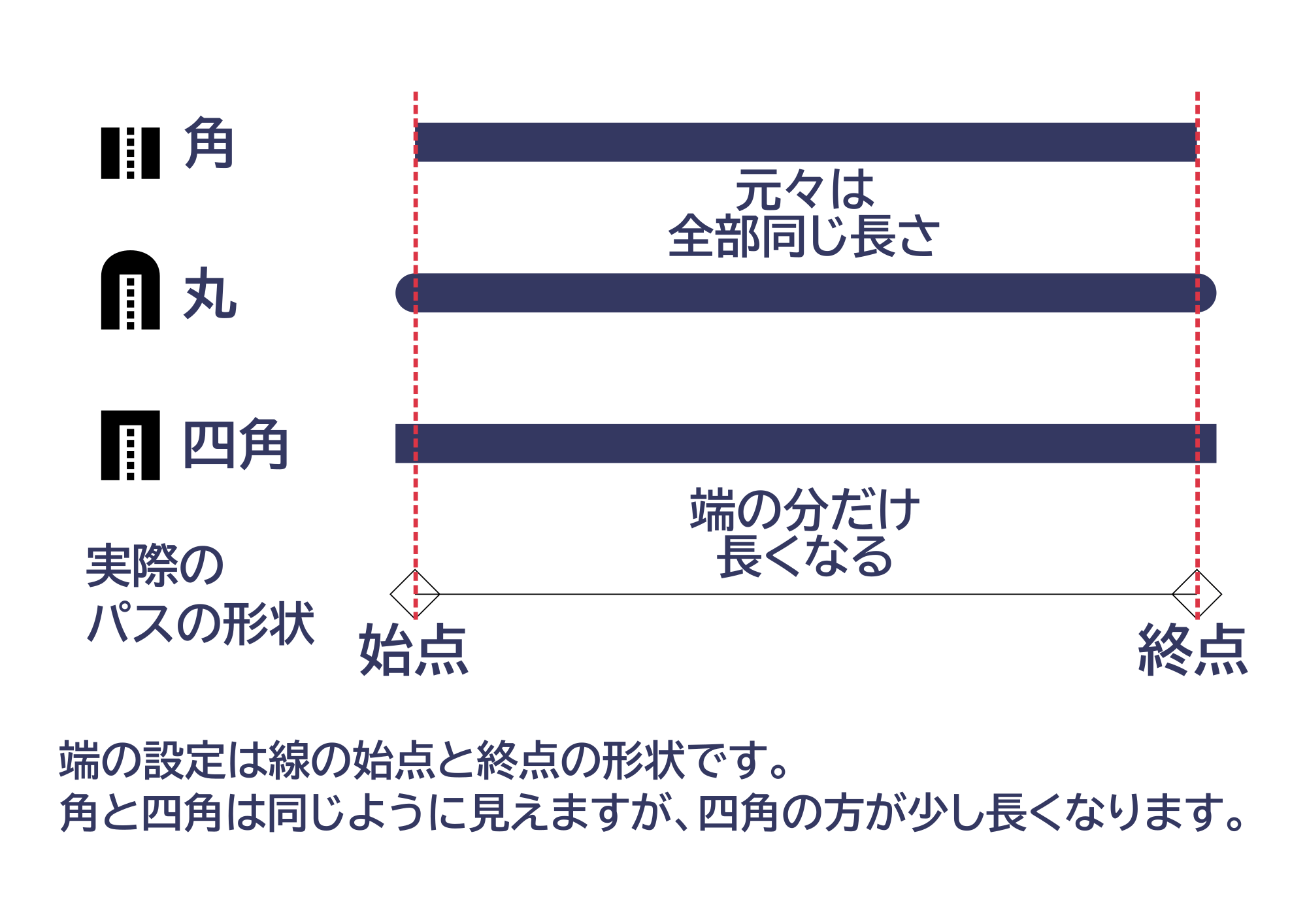 線の端と角の設定については以前の記事でもご紹介しています。