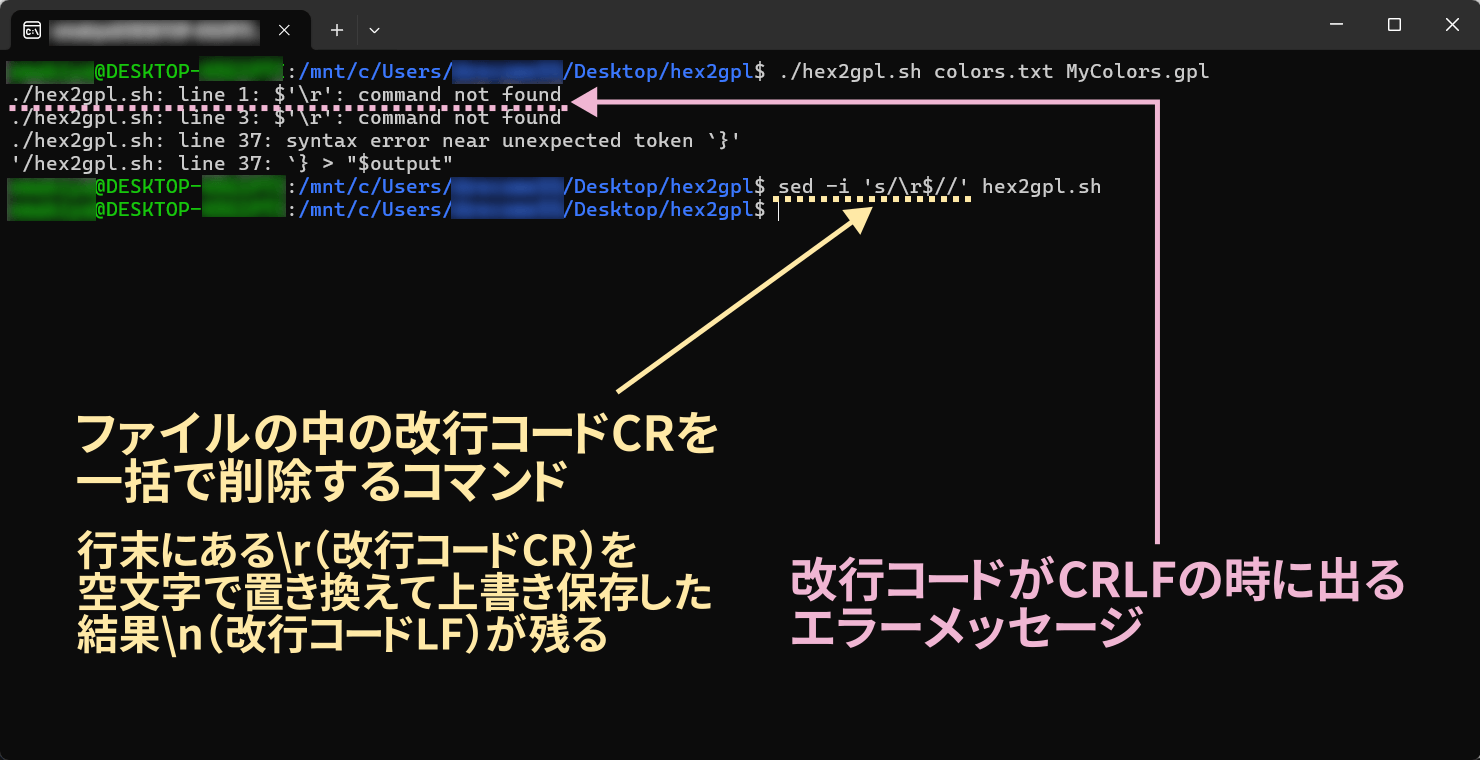 改行コードの変換が必要なのはシェルスクリプト(.shファイル)だけで、カラーリスト(.txtファイル)は改行コードの変換が不要です。