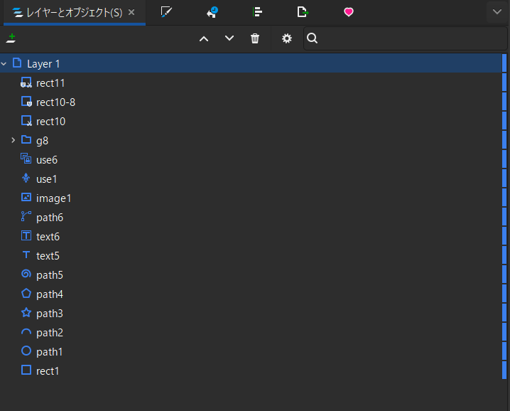 Inkscapeの[レイヤーとオブジェクト]ダイアログに表示されるアイコンは、オブジェクトの種類や状態を一目で判断するための重要な手がかりです。
