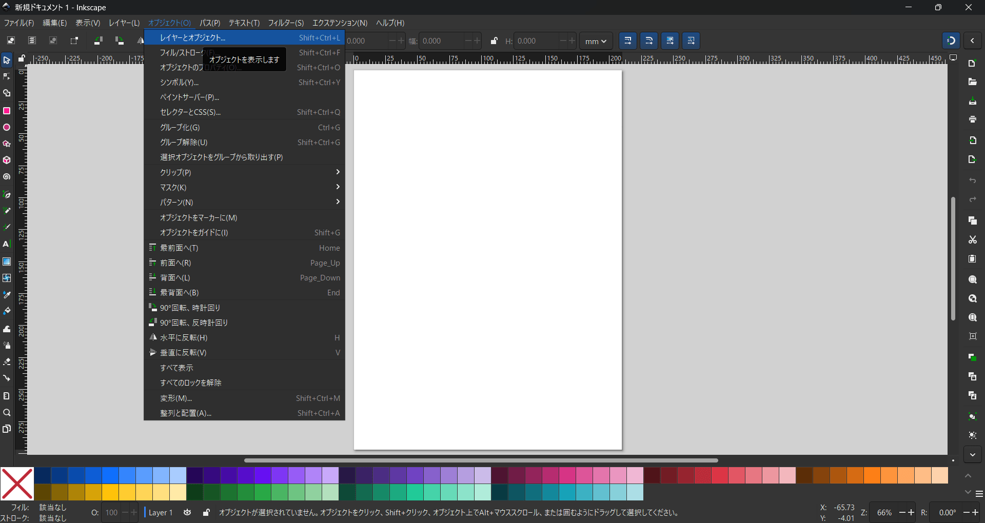 Inkscapeを使い始めたら、他の機能を使うとき以外は「レイヤーとオブジェクト」ダイアログを常に表示しておくのがおすすめです。
