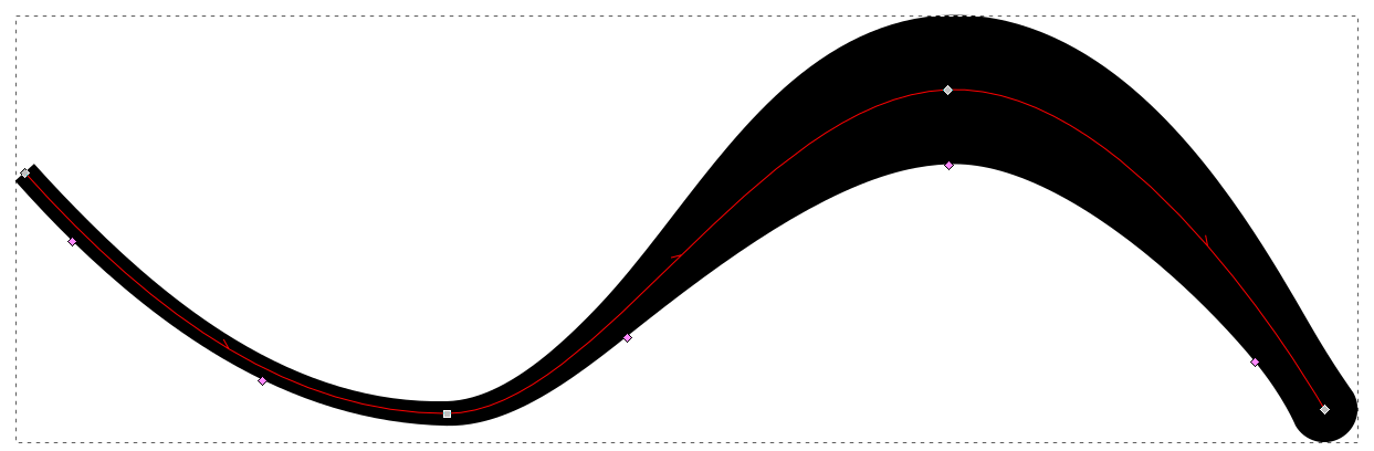 元のパスを変形させるとそれを追いかけてストロークの幅が変化します。