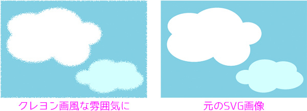 完成したオブジェクトをブラウザ上でSVGファイルとして利用したい場合、設定元のパスの形状によってはSVGフィルターの処理が重くなりますのでご注意ください。ラスター画像(PNG等)としてエクスポートする場合は処理から画像に変換されているので問題ありません。