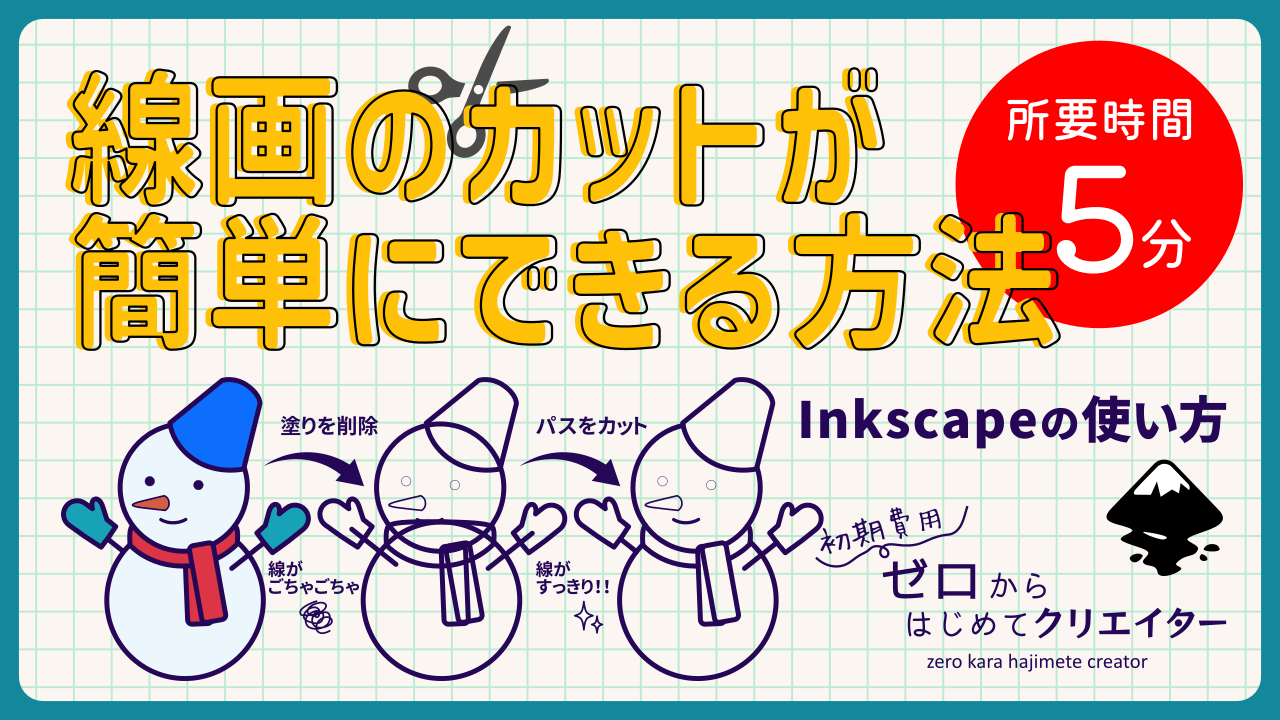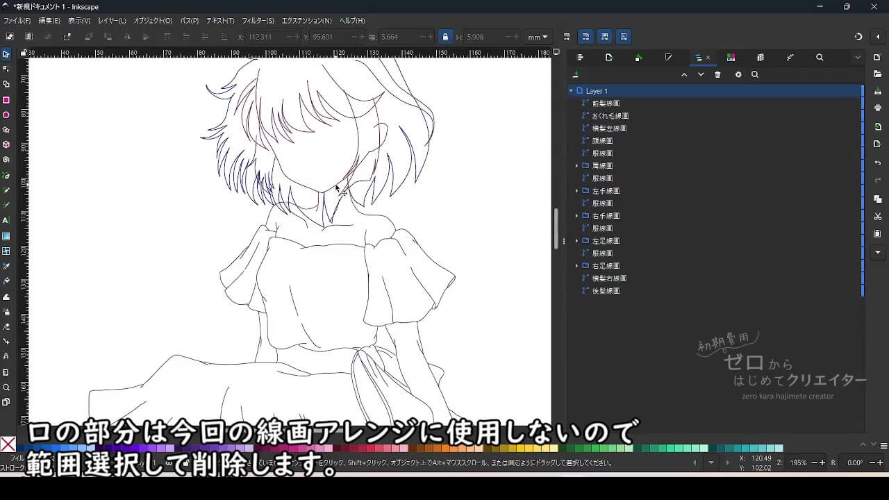 Inkscapeで作成したイラストから線画を取り出して、見せたい線と見せたくない線に整理しておくと、線画だけを使ったアレンジや印刷して使う塗り絵なども簡単に作成できます。