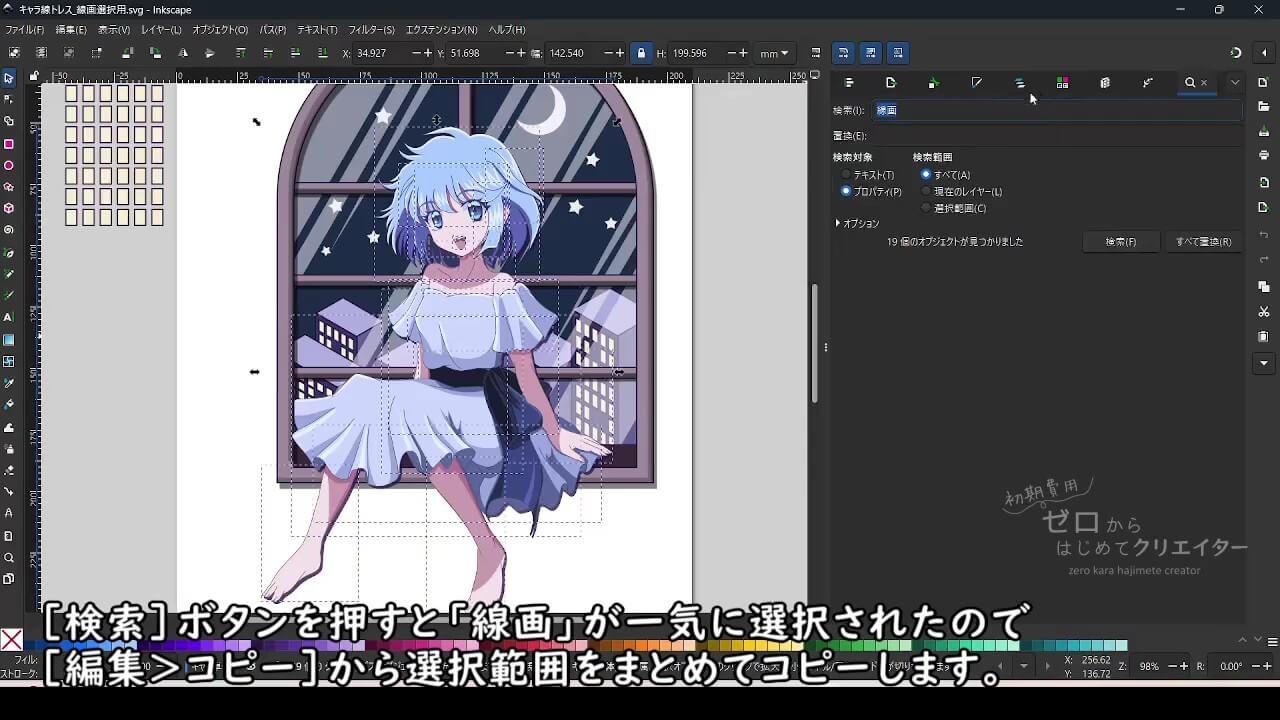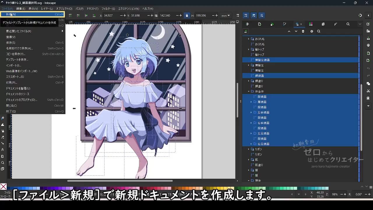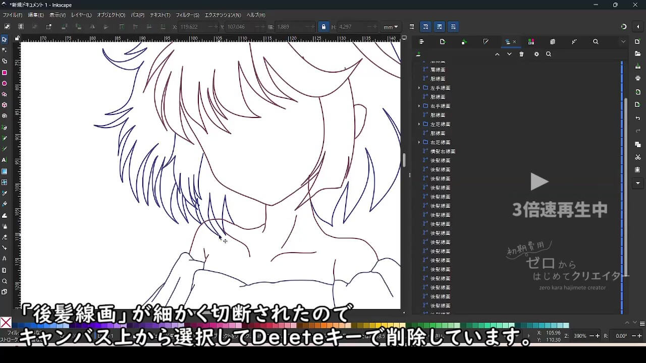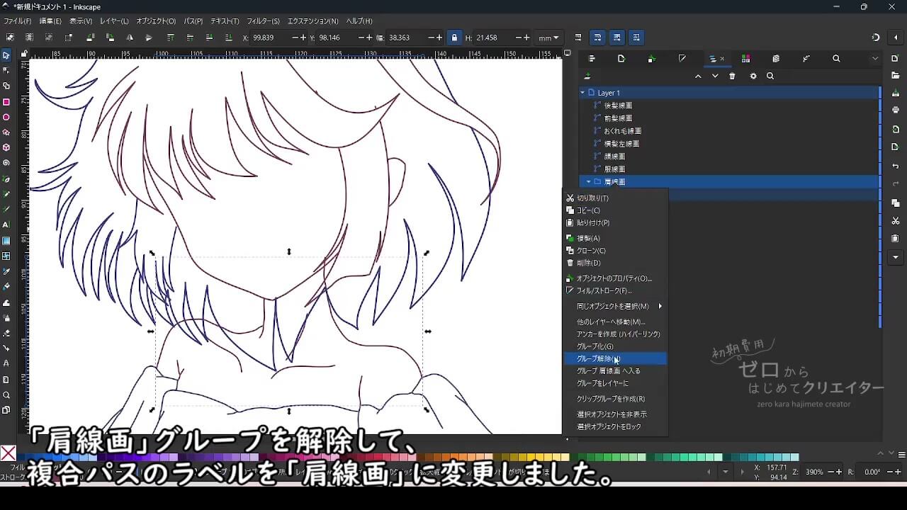 Inkscapeでイラストを着色する場合、パーツごとにパスを分けて作画しておくと塗り作業が楽になります。