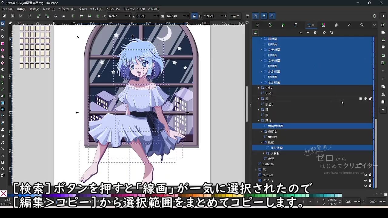 複雑なパーツ構成のイラストの場合、選択ツールでキャンバス上から上手く選択できないことがあります。