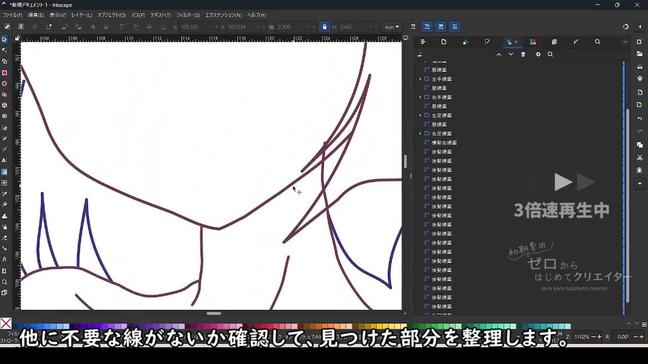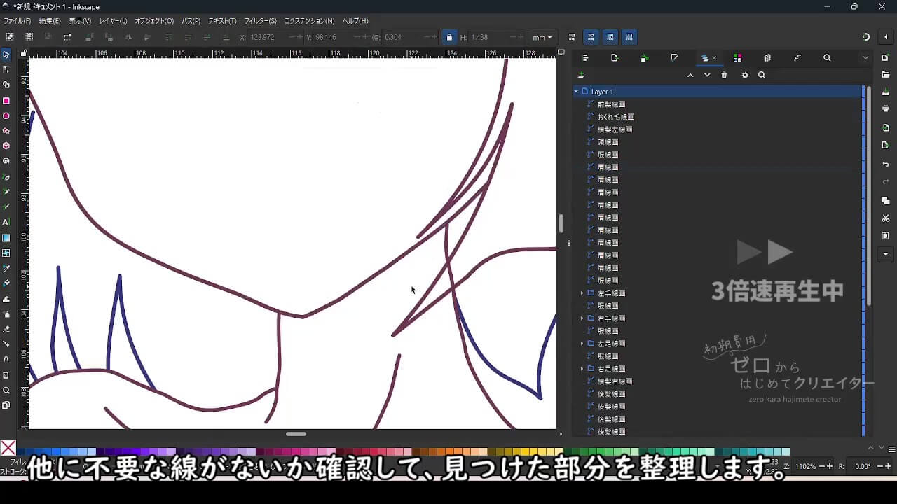 Inkscapeだけではなくデジタル作画全般に言えることなのですが、連続した部分は見えない部分も大まかに描いておくという癖をつけると、修正が必要になった際の未来の自分を助けることになります。