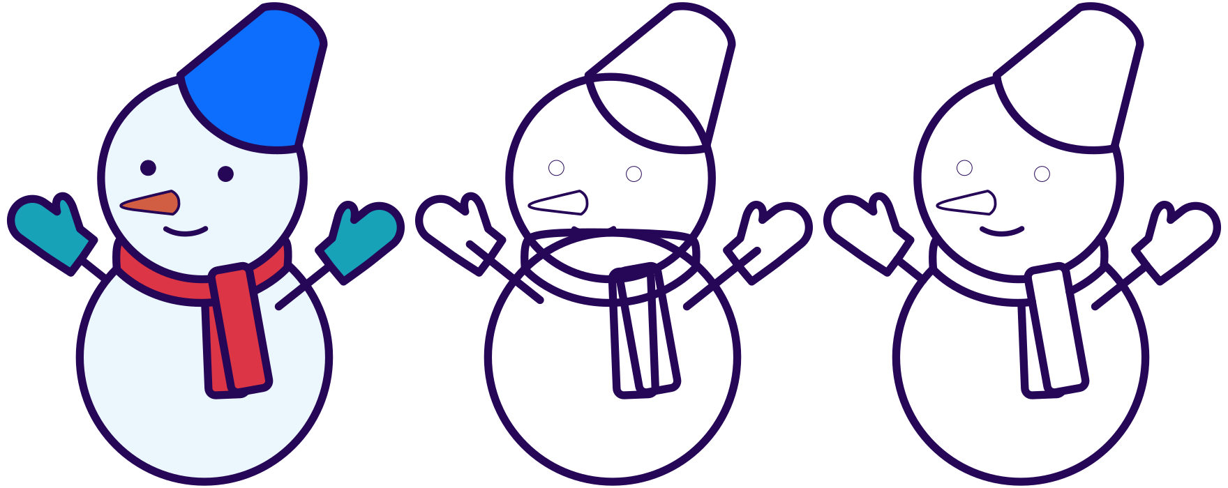 今回の[パスをカット]機能の説明のために作成した雪だるまのイラストのsvgファイルを操作の練習用にご用意しております。