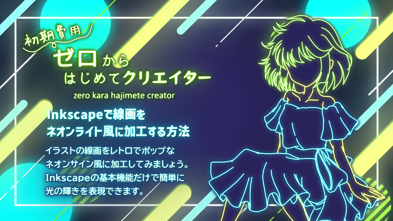 Inkscapeを使えば、イラストや文字も手軽にネオンサイン風に加工できます。