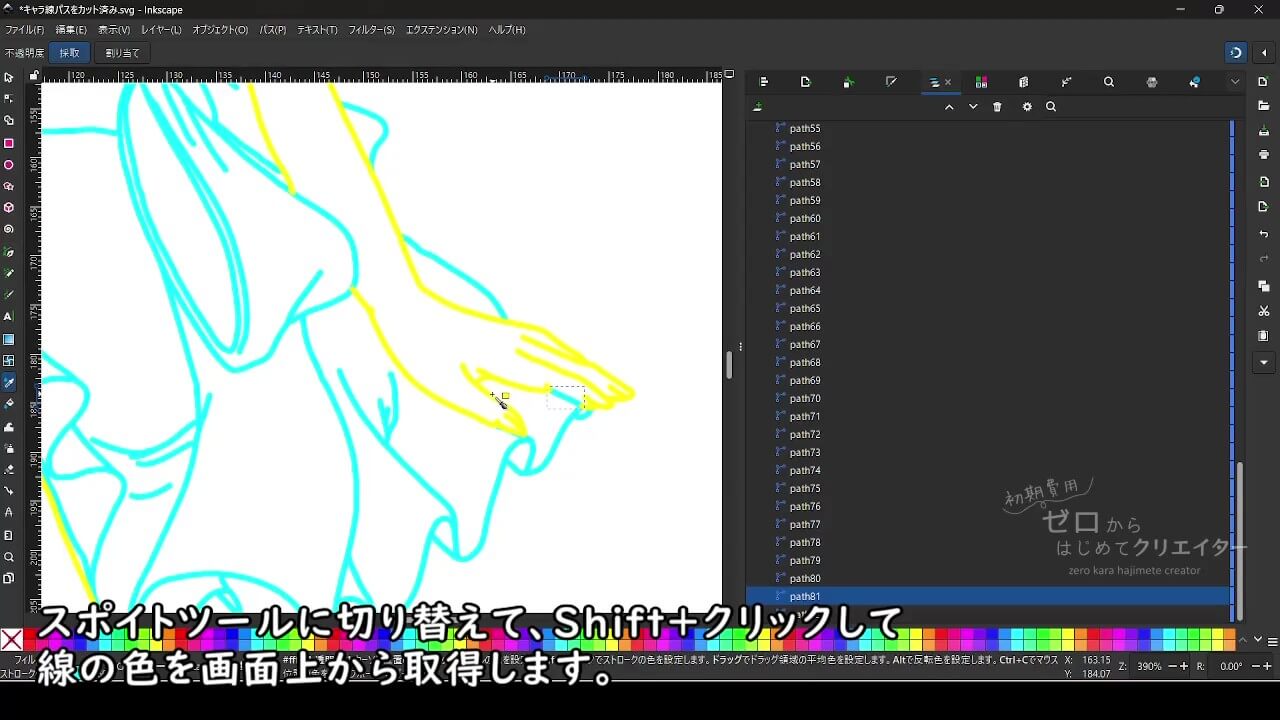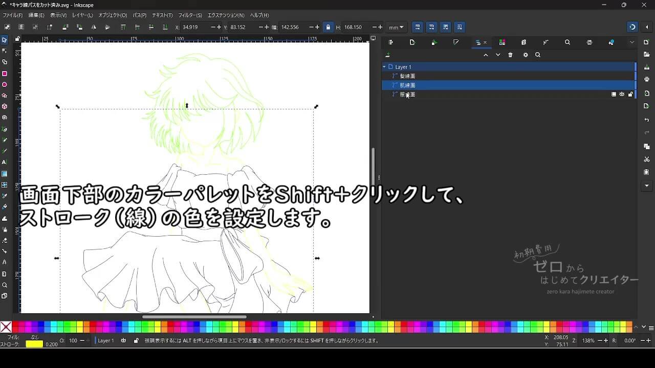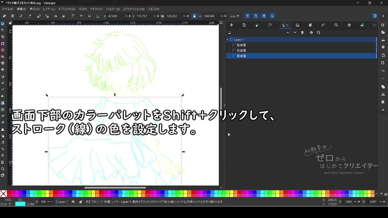 カラーパレットから好みの色をShift+クリックして、ストロークの色に設定します。