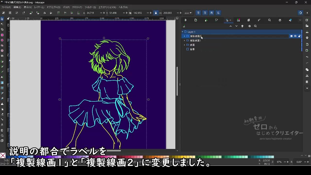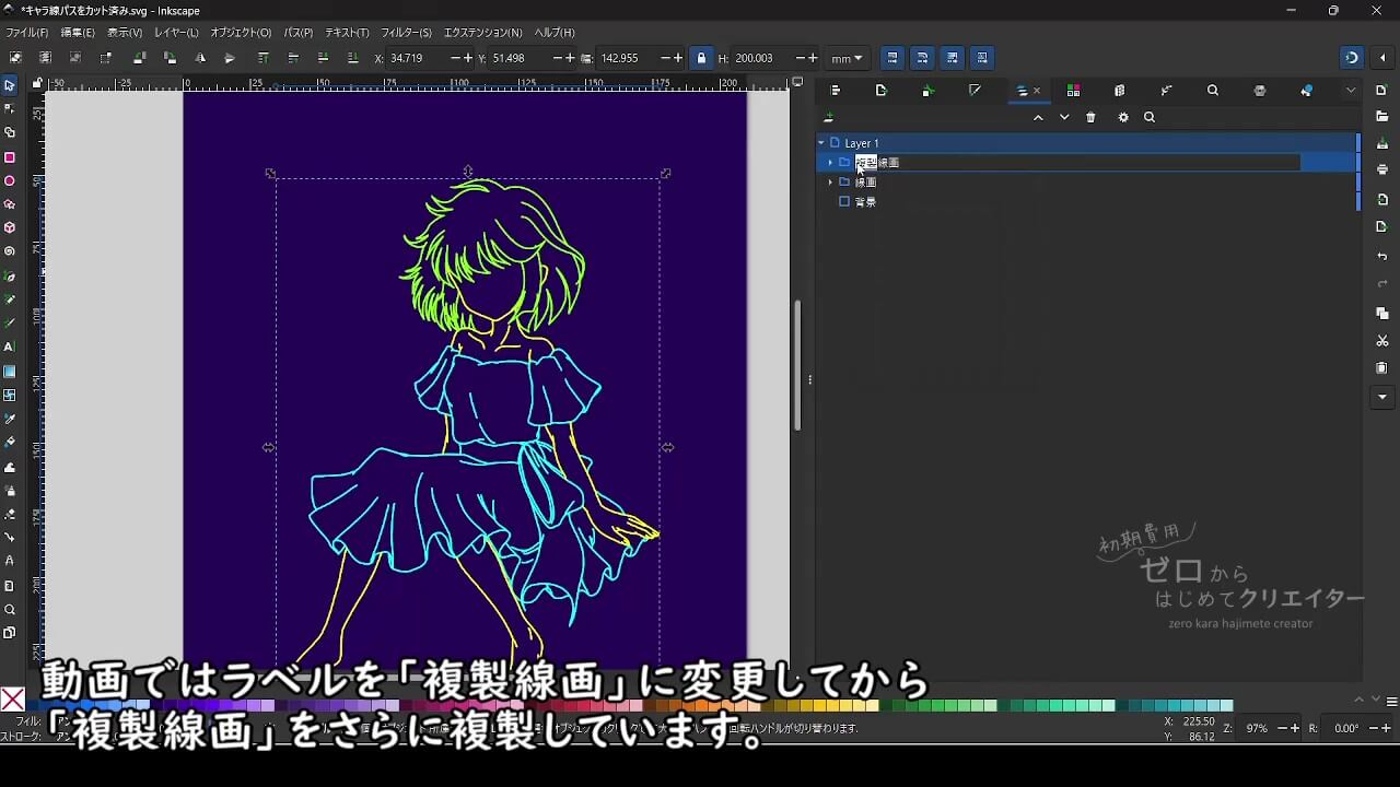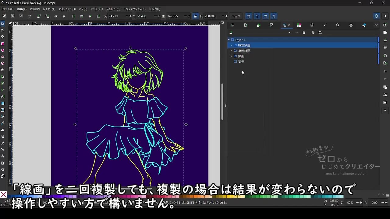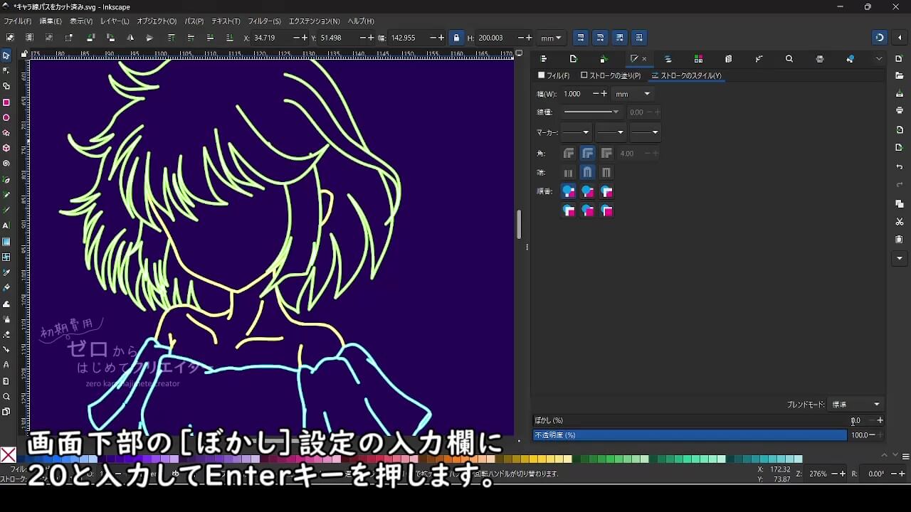 Inkscapeで線画をネオンライト風に加工する方法