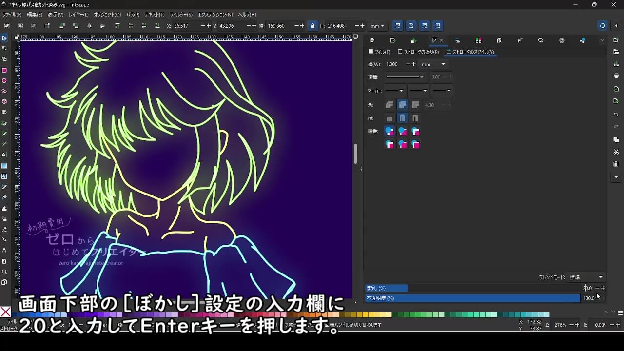 Inkscapeでネオンライト風イラストを作成する方法