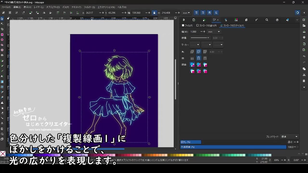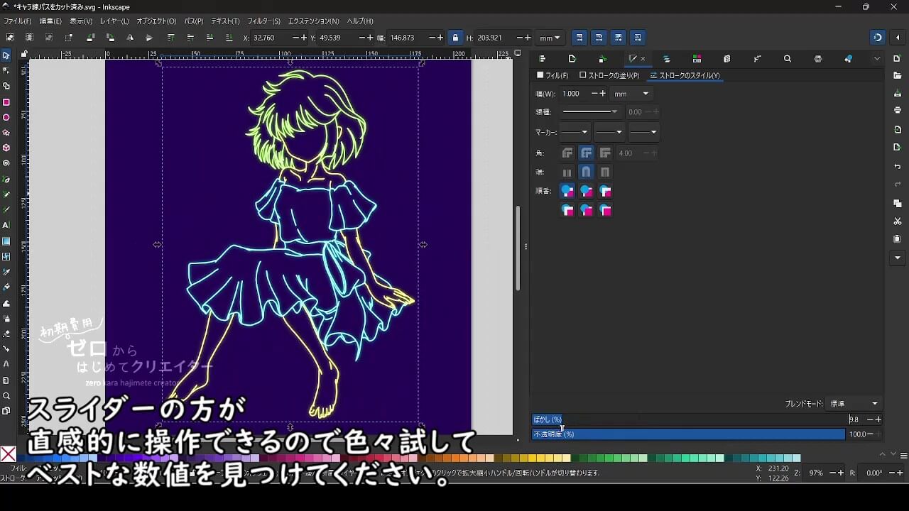 Inkscapeで線画をネオンライト風に加工する時のポイント